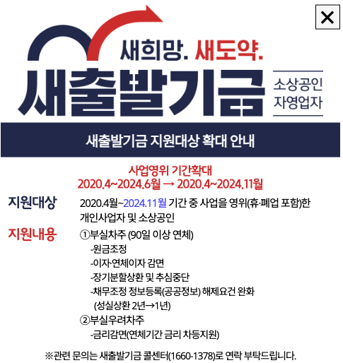 2020년 4월부터 2024년 11월까지 사업을 했던 개인사업자 또는 법인 소상공인이라면 새출발기금 신청 대상입니다.