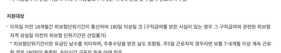 이직일 기준 최근 18개월 동안 피보험 단위기간 180일 이상 근무