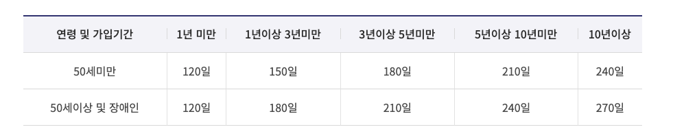 - 55세 / 10년 근무 → 270일